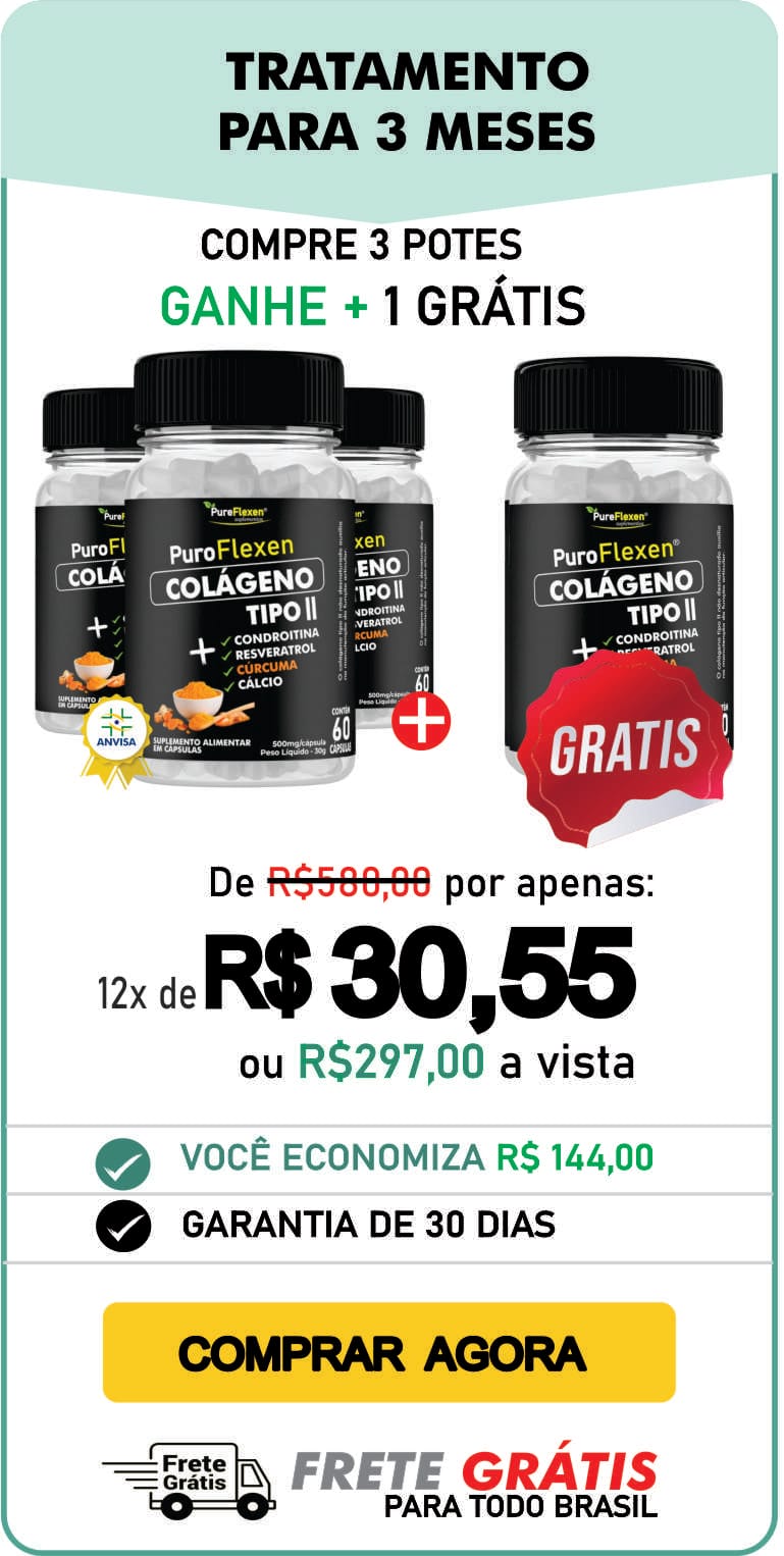 Se, após 90 dias de uso do PUROFLEXEN, você não sentir uma melhora significativa nas suas dores articulares, nós não apenas reembolsaremos integralmente o valor pago, mas também ofereceremos uma recompensa como forma de reconhecimento pelo tempo investido.